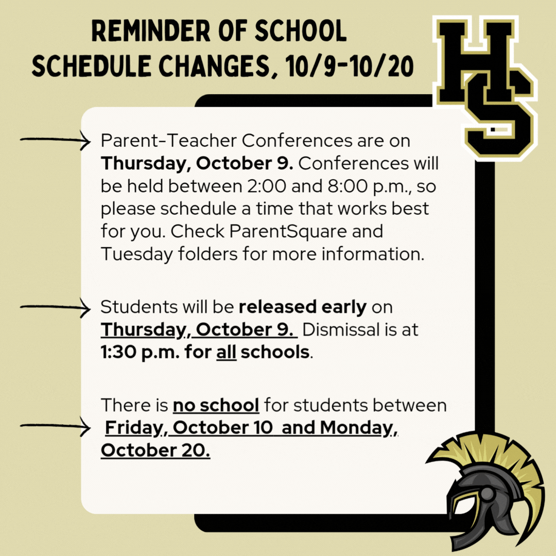 Reminder of Parent-Teacher Conferences and Early Dismissal Next Thursday